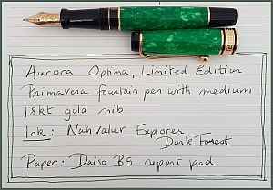 I have used multiple pens, inks and papers to write this post, but will nominate the pen I began writing the post with. It is the same pen and ink as in a previous post – the BENU 2024 Christmas Astrogem and Jacques Herbin 1670 Violet impérial ink with gold shimmer. This photo shows the pen resting on a delightful weight lifting crab pen holder designed by Tanaka Minoru. These plastic crabs come in a variety of colours.